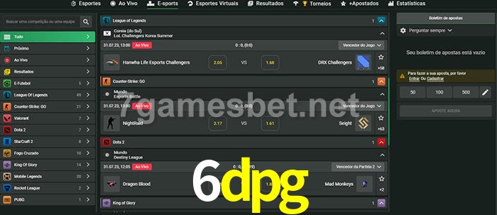 O 6dpg oferece uma grande seleção de opções de apostas em e-sports com probabilidades competitivas